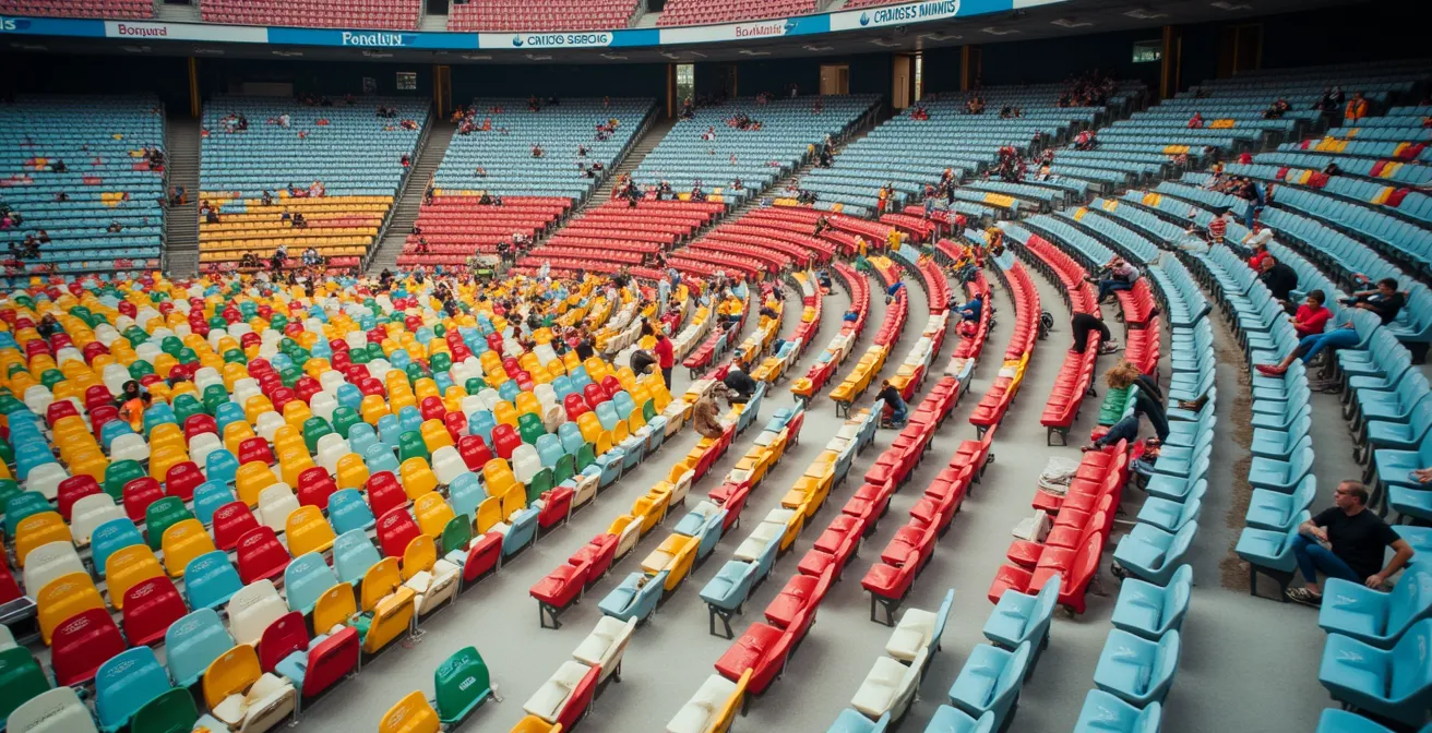 Once you have an accurate seat count and layout, you create a digital grid system. Each seat becomes a pixel with a specific coordinate. This digital map is where the design is overlaid, assigning a color to every single seat. It’s a meticulous process of data entry that must meticulously account for every obstacle that breaks the grid: stairways, camera platforms, entry and exit tunnels, and disabled access areas. These “dead zones” must be mapped as negative space within the design. Failing to do so will result in distorted lines and incomprehensible shapes on matchday.